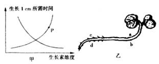 5.将植物横放,测量根和茎生长素浓度与其生长状况的关系如甲图所示。则曲线上P点最可能对应于乙图中的位置是