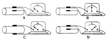 10.如下图所示,将连接灵敏电压表的导线两端置于神经纤维的外表面和内部(已知表的指针向电流流入表内的接线柱一侧偏转),显示神经纤维兴奋部位膜电位的是