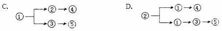 A.①→②→③→④←⑤ B.②→①→④→③→⑤