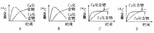 13.在光照下,供给玉米离体叶片少量的14CO2,随着光合作用时间的延续,在光合作用固定CO2形成的C3化合物和C4化合物中,14C含量变化示意图正确的是 ( )