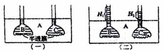 C.图(二)A中水分子扩散到B的速度等于B中水分子扩散到A的速度