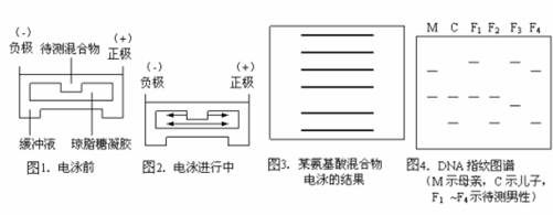(4)图4通过提取某小孩和其母亲,以及待测定的四位男性的DNA,分别由酶处理后,生成含有若干DNA片段,并进行扩增得到的混合物,然后进行电泳所得到的一组DNA指纹图谱,请分析:F1-F4中,谁是该小孩真正生物学上的父亲?为什么?