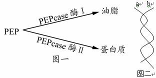 45.浙江农科院陈锦清教授发现了油菜产油机制:光合作用产生磷酸烯醇式丙酮酸(PEP)运向种子有两条转变途径,(如图一)并根据这一机制培育出高油油菜,产油率由原来的35%提高到58%。