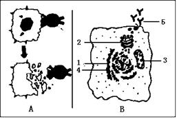 (2)实验二中毒性弱的霍乱菌苗进入小鼠体内,使其体内产生了相应的免疫活性物质,该过程曾出现下图 (填A或B)所示的现象。