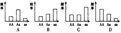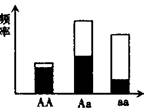 35.某种群中AA、Aa、aa的基因型频率如下图,图中阴影部分表示繁殖成功率低的个体。则该种群经选择之后,下一代中三种基因型频率的结果最可能是 ( )
