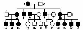 40.下图表示的是人类很少见的一种遗传病一一遗传性肌肉萎缩症,这种病症可能是由于一个基因位点突变引起的,请判断此遗传病的遗传类型最可能的是 ( )
