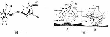 (4)人体肌肉的运动,也是受传出神经支配的。当兴奋传到传出神经末梢时,突触前膜释放ACh(乙酰胆碱)与突触后膜(肌细胞膜)上的ACh受体结合,引起肌肉收缩。某病人血清中含有对抗乙酰胆碱受体的抗体,产生的结果如图二中B图所示,则该病人所患疾病及表现症状为 。