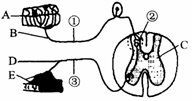 A.切断①处,刺激③处,引起E处肌肉收缩