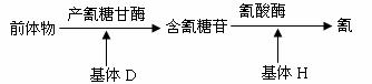 (3)有人做了如下一个实验,将F2中产氰的植物叶片提取液除去氰后分别加入含氰糖苷和氰酸酶,结果都能在反应物中提取到氰。如果对F2中不含氰的类型也进行上述实验,那么可根据实验现象来推断F2的基因型,其方法如下: