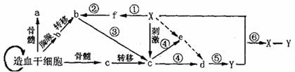 30.下图表示人体内某些淋巴细胞的分化和某种免疫过程,数字表示过程,字母表示细胞或物质。下列叙述错误的是 ( )