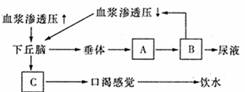 3.下图为水平衡调节机理,请据图判断A、B、C依次为 ( )