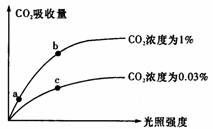 11.下图表示将某植物放在不同浓度CO2环境条件下,其光合速率受光照强度影响的变化曲线。b点与a点相比较,b点时叶肉细胞中C3的含量;b点与c点相比较,b点的叶肉细胞中C3的含量变化情况是 ( )