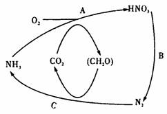 12.右下图是生态系统中碳循环和氮循环的一部分,A、B、C三类微生物参与其中,下列说法正确的是 ( )