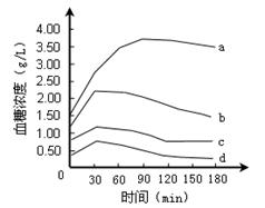 D.c、d代表正常人的血糖含量变化