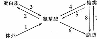 3.下图表示人体内氨基酸与其它物质之间的关系,下列叙述中正确的 ( )