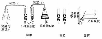 (1)实验一:小球藻在适宜条件下繁殖很快,在相同培养液中,以图甲中的装置(a)和(b)分别培养小球藻(抽去空气),将两个装置都放在阳光下,观察最初的变化。