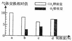 2.下图表示某绿色植物的非绿色器官在氧浓度为a、b、c、d时,释放量和吸收量的变化。下列相关叙述正确的是 ( )