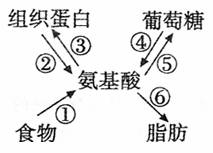 (2)图中4和6过程都必须首先经过 作用,该作用形成的含氮部分能产生蛋白质特有的代谢终产物 。