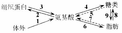 51.(7分)下图表示人体内氨基酸与其他物质之间的关系,1-9表示生理过程。请据图完成有关问题。