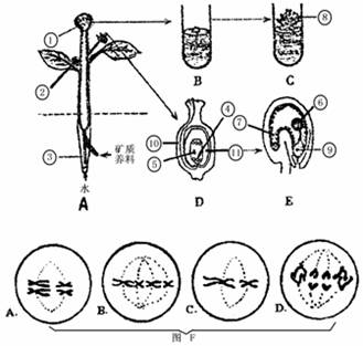 (5)在图E的⑥中可以找到图F(均为该生物处于不同时期的细胞)中的哪些细胞 [填字母],并且根据图F推测此植物以下结构中细胞核中的染色体数:卵细胞 、胚乳 、子房壁 。