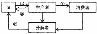 21.下图为某生态系统的部分物质循环简图,其中M表示非生物的物质和能量。下列叙述正确的是 ( )
