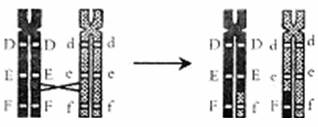 交换过程示意图(左:交换前的染色体;右:交换后的染色体)