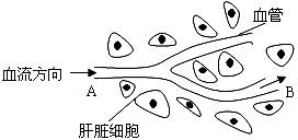 (5)下图为肝脏的局部结构模式图。健康人饭后半小时,血管A端与B端相比,血糖浓度较高是的血管A端,此时胰岛分泌的激素 分泌量减少。