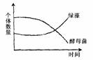 2.在培养条件完全相同的情况下,用一种培养液分别培养单细胞绿藻和单细胞酵母菌,培养结果如下图所示。造成图示结果的最可能原因是 ( )