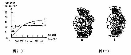 30.(22分)图(一)是测定图(二)两种植物在不同二氧化碳浓度下的光合作用强度曲线,据图回答下列问题:
