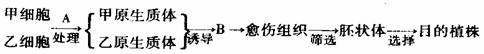 ③属于植物组织培养的过程是(用图中文字、字母及箭头表示) 。除体细胞杂交外,还有 育种需要进行植物组织培养。