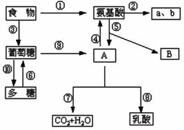 53、(10分)下图表示人体内的部分物质代谢过程,请分析回答: