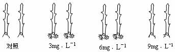 19.为促进某种植物扦插枝条顺利生根,一技术员用几种不同浓度的吲哚丁酸(一种生长素类似物)溶液处理插条基部,然后在沙床中培养,观察生根情况。从实验结果图来看,为促进枝条生根,选用吲哚丁酸的适宜浓度是 ( )