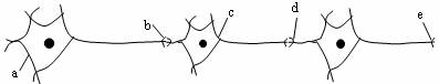 20.下图表示三个通过突触相连的神经元,在a、b、c、d、e五处中,选择一处施加一强刺激,要求其余四处均能检测到动作电位,被选择位置应是 ( )