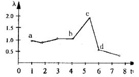 30、环保工作者对某地区野生动物--野兔种群数量进行连年监视,以此作为对该地区环境稳定与否的评价指标之一。在某时间段内得到数据如下图所示。[