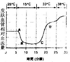 6、一个处于安静状态的人,在不同气温中,皮肤血管血液的相对流量如下图所示,下列分析不正确的是