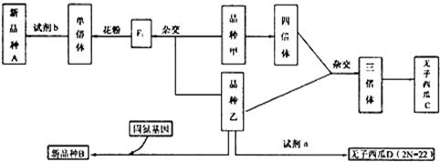 (1)已知普通西瓜的染色体数目为2n=22,下图是利用品种甲和品种乙培育西瓜新品种的流程。