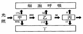C.每一营养级的能量大部分用于呼吸作用和被丁利用