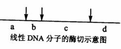 4.已知某种限制性内切酶在一线性DNA分子上有3个酶切位点。如图中箭头所指。如果该线性DNA分子在3个酶切位点上都被该酶切断,则会产生a、b、c、d四种不同长度的DNA片段。现有多个上述线性DNA分子,若在每个DNA分子上至少有1个酶切位点被该酶切断,则从理论上讲,经该酶切断后,这些线性DNA分子最多能产生长度不同的DNA片段种类数是