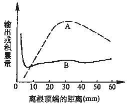 I.图中A、B曲线分别表示在适宜的条件下,一定时间内某一必需矿质元素从大麦幼根不同部位向茎叶的输出量和在大麦幼根相应部位积累量的变化。请回答: