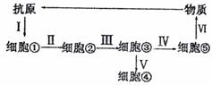 3.下图为人体的某种特异性免疫图解,①~⑤表示不同免疫细胞,I~VI表示生理过程,下列说法中正确的是 ( )
