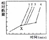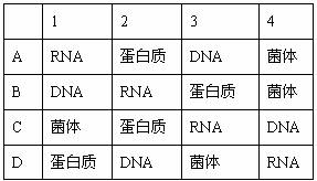 6. 下图表示某细菌生长过程中,在X 点将该细菌接种到与先前营养条件不同的环境后,细胞数、RNA 、DNA 和蛋白质的相对数量的变化情况。四条曲线对应的物质或结构正确的一组是 ( )