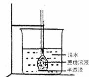 ①组装渗透装置(如上图)两套,分别编号为l 、2。②在两组烧杯中分别加人等盆的清水。在长颈漏斗中分别加人等量的同一浓度蔗糖溶液,保持管内外液面高度相等。