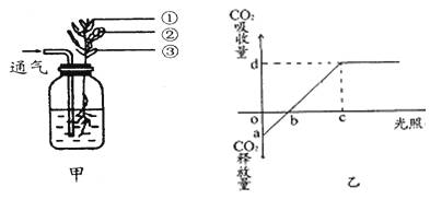 (5)已知该植物光合作用和呼吸作用的最适温度分别为25℃和30℃,乙图曲线表示该植物在25℃时光合作用强度与光照强度的关系。若将温度提高到30℃的条件下(原光照强度和CO2浓度不变),理论上图中相应点的移动分别是:a点 (填“上移”、“下移”或“不移”);b点 (填“左移”、“右移”或“不动”);d点 (填“上移”、“下移”或“不动”)。