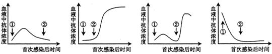 (1)如果图中①表示第一次感染、②表示第二次感染则能正确表示病毒或病菌侵入机体后,引起血液中抗体浓度变化的是____________。