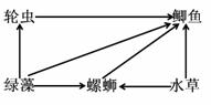 (3)为增加甲水池生态系统的多样性,向池中引种了大量浮萍,一段时间后,水面长满了浮萍,水草、绿藻和轮虫相继死亡。水草死亡的最主要原因是缺少 ,轮虫死亡的主要原因是缺少__________________。此时该水池中食物链只剩下2条,请画出这2条食物链构成的食物网。