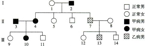 (2)假如III10和III13结婚,生育的孩子患甲病的概率是________________,患乙病的概率是________________,不患病的概率是________________。