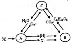 40.下图为绿色植物体内某些代谢过程中物质变化的示意图,A、B、C分别表示不同代谢过程。以下表达正确的是 ( )