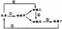 B.同一细胞产生的物质丁可作用于多种抗原