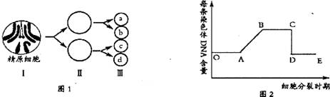 32.(9分)下图1是果蝇精子的形成过程示意图,图2是其分裂过程中每条染色体上DNA的含量变化曲线;据图回答问题: