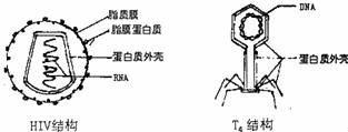 24.下图是艾滋病病毒(HIV)和大肠杆菌噬(T4)的结构模式图。比较二者的结构和化学组成。下列叙述正确的是